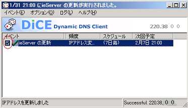 DiCEのショートカットをスタートアップを登録して於けば自動的にグローバルIPとサブドメインを紐付けしてくれます。複数のDDNSサービスも登録更新も可能ですのでDDNSダウン対策も考えて別のサービス事業者も登録しておいた方が良いと考えます。尚、同一サービス事業者内では1サブドメインの制限をしている場合が多いので注意が必要です。 |