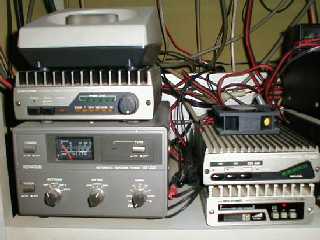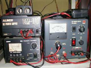 電源関係です 右側は30Aの安定化電源で、ほとんどのRigにDC13.8V電源を供給しています。 |